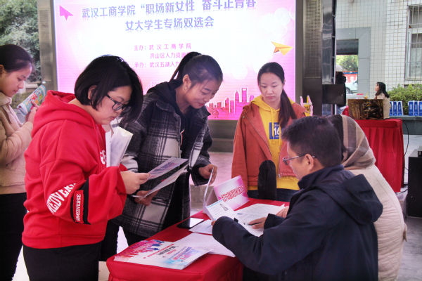 武汉工商学院招生与就业工作部部长朱宜介绍,学校为帮助女大学生就业,特地开展了一系列的精准帮扶活动,包括女生求职技巧辅导、女生求职面试化妆课、女生就业心理咨询等,这次与洪山区人力资源局联合主办女性专场招聘会就是其中的活动之一,他向社会企业呼吁:“女性能顶半边天,女性就业率不仅关系到女性本身的发展,更关系到整个社会的和谐稳定,希望企业能够为女性敞开大门,提供公平的就业机会。”