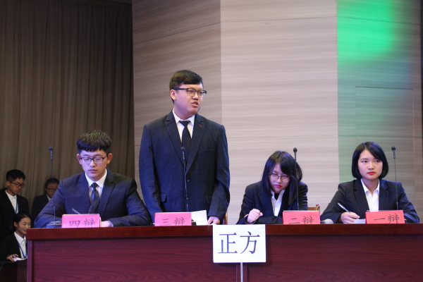 新闻中心讯( 记者 陈洁 见习记者 叶紫瑶 卢晨 夏天)舌战群儒,以辩会友。11月7日晚6:30,武汉工商学院文法学院第五届群英辩论赛在学校402学术报告厅隆重举行,湖北中医药大学、武昌工学院、武汉交通职业学院以及武汉工商学院四所高校学生同台竞技展风采。武汉工商学院文法学院分团委书记景会杰老师、法学系主任张威老师、新生辅导员侯东凯老师和肖隽老师担任辩论赛评委,2018级新闻专业和法学专业的新生观看了此次辩论赛。