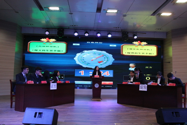 图为武汉工商学院对阵湖北中医药大学辩论队 摄影:向慧