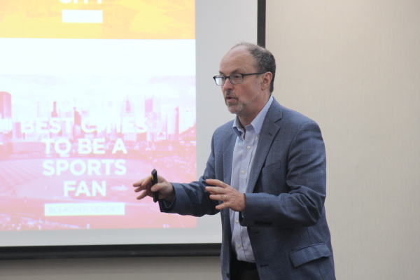 图为David Finegold校长宾介绍美国查塔姆大学 摄影:方涵