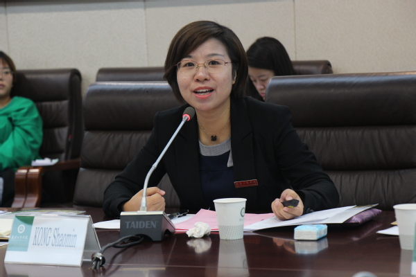 随后,孔少敏处长介绍了武汉工商学院在水处理技术、鱼蔬共生水产养殖、促进乡村振兴等可持续发展领域已取得的成绩,并表示非常期待两校师生能够在教学、科研等多方面开展深入合作。