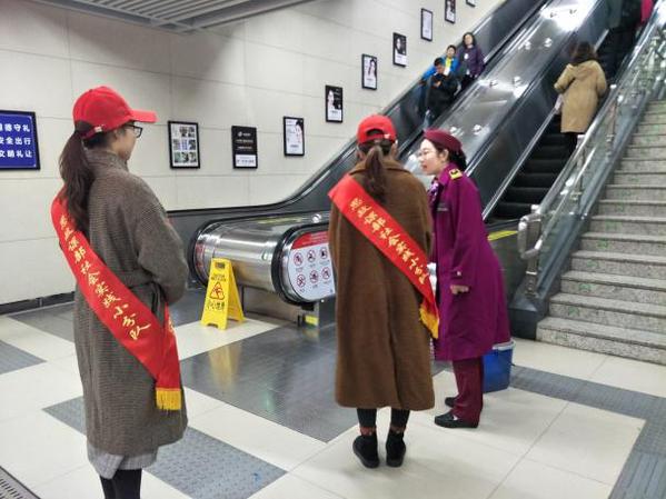 新闻中心讯(通讯员 王海燕)11月17日,武汉工商学院青年志愿者协会10名大学生志愿者,在公共课部胡瑾,余梦2位老师的带领下来到宝通寺地铁站开展志愿者服务。此次活动由公共课部思政教育社会实践小队联合青年志愿者协会以及马克思主义研究会共同开展。