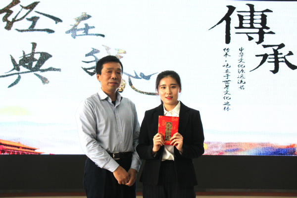 图为邱玉添书记为三等奖获得者颁奖 摄影:冯哲昊