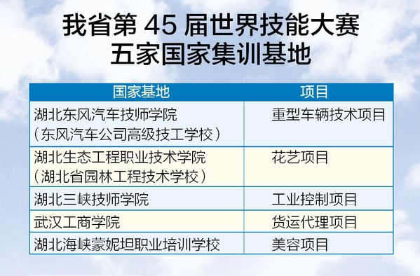 2018年4月,结合选手的竞赛成绩,省人社厅决定在该校设立世赛货运代理项目湖北省集训基地。如今,作为世赛货运代理项目国家集训基地,武汉工商学院欢迎各兄弟院校来参加培训,“希望更多本科院校加入,广泛参与,才是世界技能大赛的核心。”世赛货运代理项目中国集训基地专家组长周建亚说。