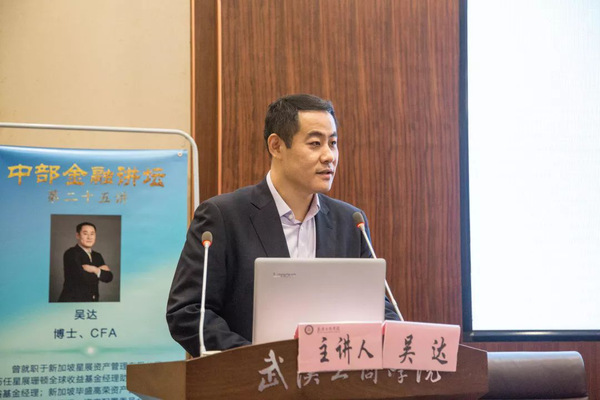 新闻中心讯(特约记者 黄燕)10月20日,长盛基金管理有限公司国际业务部总监、长盛基金(香港)有限公司副总经理吴达博士做客武汉工商学院第26期中部金融讲坛,在学校图书馆第四会议室为经济与商务外语学院100余名师生讲授中国股票市场投资的短期问题与长期思考。