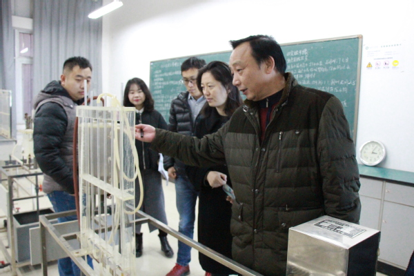 图为沈磊主任正在参观学校实验教学中心 摄影:曾怡云