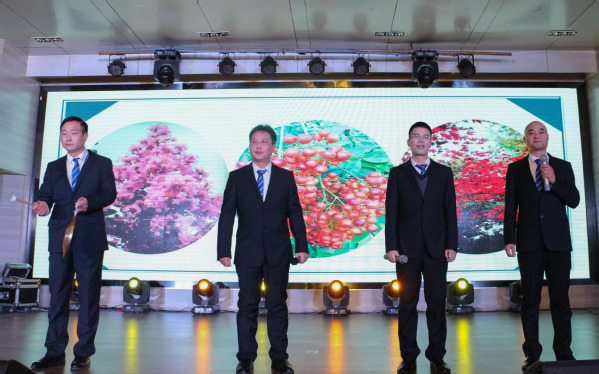 图为校领导与主持人合影 摄影:高静