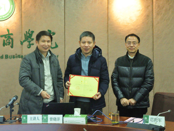新闻中心讯(记者 周豪)1月2日下午4:00,复旦大学专用集成电路与国家重点实验室教授、长江学者特聘教授曾晓洋在武汉工商学院讲学并受聘为学校特聘教授。受聘仪式在学校第一会议室举行,武汉弘博集团有限责任公司董事长巴能军,学校校长陈奎生,校党委书记陈伟,信息工程学院院长孙宝林、常务副院长胡成松、副院长彭敏及近百名师生参会。