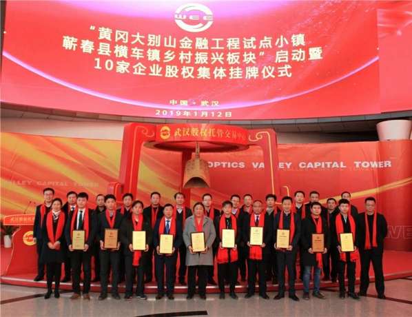 新闻中心讯(记者 万风)1月12日,“黄冈大别山金融工程试点小镇蕲春县横车镇乡村振兴板块”在武汉股权托管交易中心启动,并举行首批10家企业集中挂牌仪式,这意味着湖北诞生全国区域性股权市场首个“乡村振兴板块”。武汉工商学院乡村振兴学院院长巴能强博士出席启动仪式。