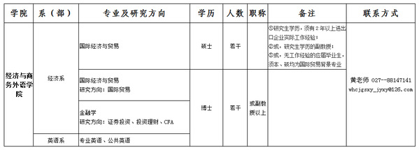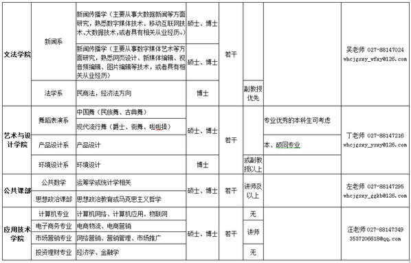 1.联系方式: 单位:武汉工商学院人力资源部 电话:027-88147117