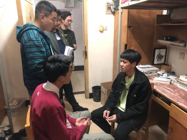 14日晚,帮扶小组成员走进寝室与被帮扶学生面对面交流,详细了解大家在学习、生活上所遇到的困难和问题,积极主动地为同学们分享和交流自己的经验,并有针对性地进行逐一分析,解开大家的困惑。