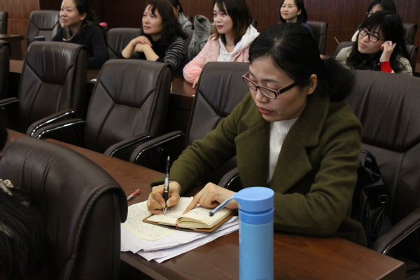 图为认真做笔记的老师 摄影:唐明悦