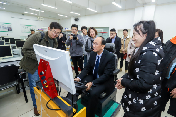 图为来访嘉宾参观实验教学中心 摄影:王延飞