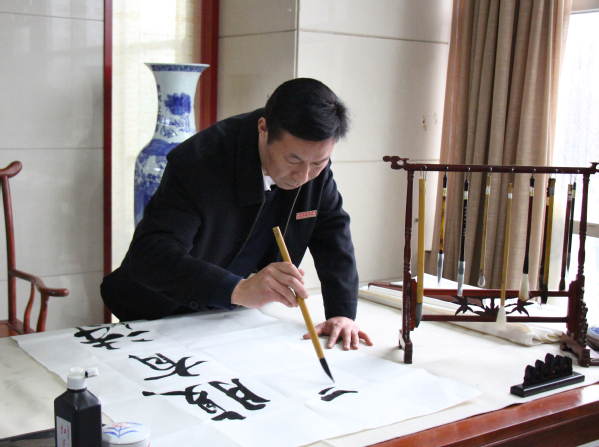 图为陈伟书记正在写书法 摄影:葛诗瑶