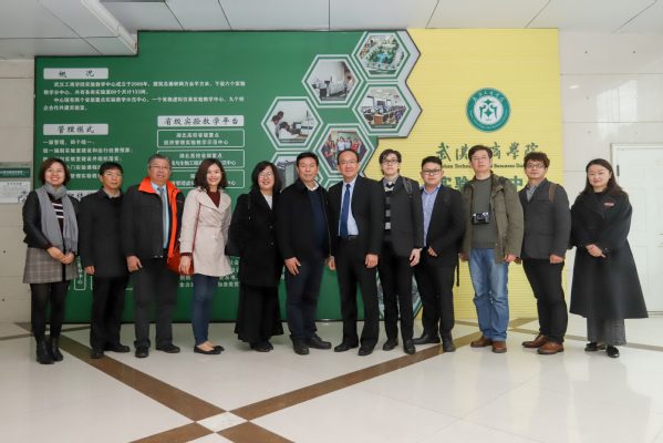 图为来访嘉宾在实验教学中心合影 摄影:王延飞