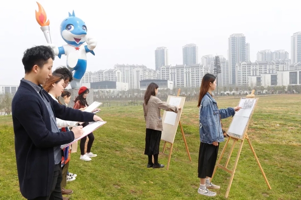 3月29日上午,在第七届世界军人运动会军运村的施工建设现场,武汉工商学院艺术与设计学院的15名师生们用手中的画笔描绘军运村建筑及园林设计的“中国元素”,并计划通过推出系列手绘作品的形式,将这些“中国元素”展示在广大师生面前。