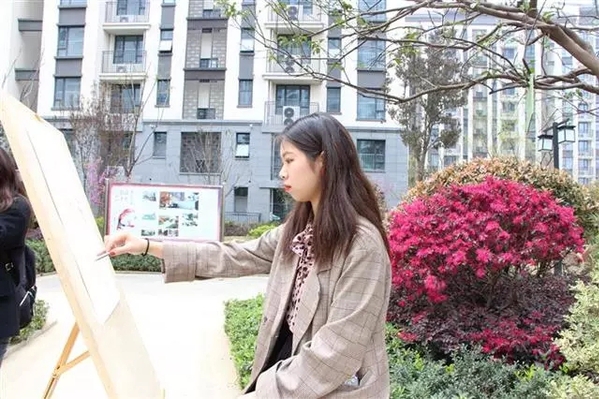 手绘现场,武汉保利金夏房地产开发有限公司军运村项目负责人郭方向师生们介绍了军运村建筑及园林设计的“中国”特色,他说,军运村作为军运会运动员们居住的“家园”,是向世界展示中国、展示武汉的靓丽名片,因此,整个军运村建筑都是新中式风格设计,处处彰显着中国特色元素,包含着中国传统文化的丰富内涵。