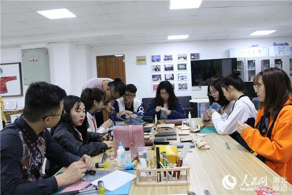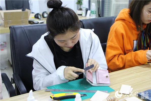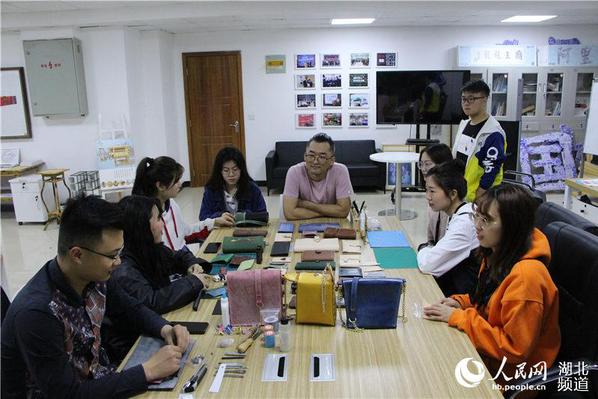 “这款钱包使用的是雾蜡皮,这种皮革有一种特殊光泽,具有仿古的艺术效果,钱包底部采取了双波浪的手工缝线方式,让这款包包既文艺又具有跳跃感……”4月9日,在武汉工商学院的一间实训室内,该校艺术与设计学院教师金龙正在教学生们设计制作各式时尚皮包,桌子上面摆满了学生们制作好的包包。