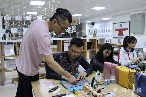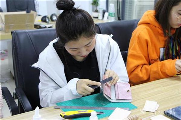 湖北日报讯(记者韩晓玲、通讯员段开鑫、王立宏、向慧)“这款钱包使用的是雾蜡皮,这种皮革有种特殊光泽,具有仿古的艺术效果。钱包底部采取了双波浪的手工缝线方式……”4月9日,在武汉工商学院的一间实训室里,该校艺术与设计学院教师金龙正在教学生们设计制作时尚皮包。