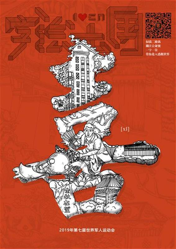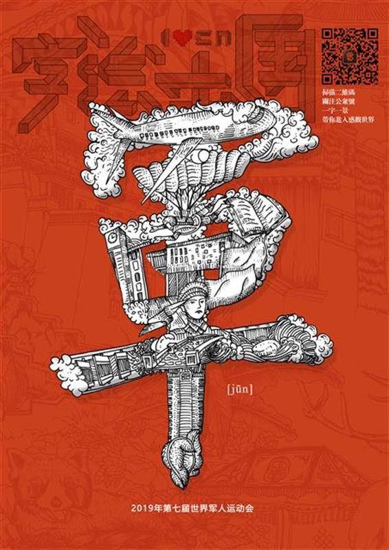 系列作品由该校艺术与设计学院“字绘中国”团队老师徐郑冰、李光慧、黄家昶指导,学生们共同创作完成。他们不仅在老师的带领下实地探访了军运村,还通过网络等渠道了解军运会的历史、比赛项目、场馆设计,及军队文化和军人风采等。