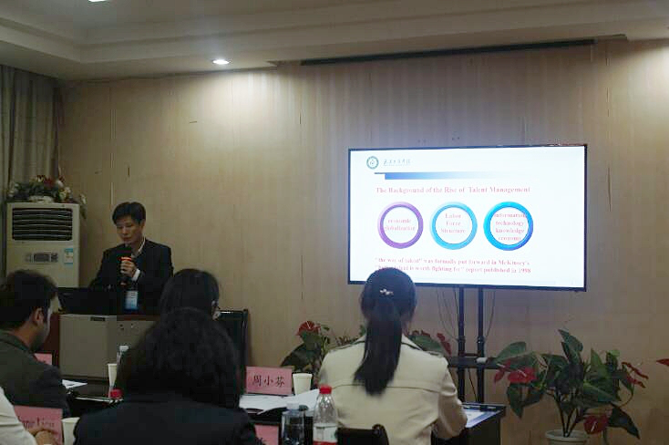 武汉工商学院人力资源部部长、副教授邢赛鹏对“人才管理兴起的背景”、“中国人才管理研究的主要视角”、“研究局限”、“未来展望”这四个方面进行了讲解。他说:“企业普遍面临的困境是:一方面是外部环境的不确定性使企业难以预测外部劳动力市场上人才供求关系的状况;另一方面, 企业难以吸引所需人才,花费大量资源培养的人才却很难留住。这些是摆在很多企业面前一个严峻的问题,所以说人才管理的核心是怎样在激烈的竞争中吸引和保留人才。”
