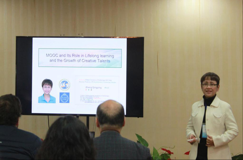 武汉理工大学教授、瑞典皇家理工学院荣誉教授张庆英围绕“MOOC(慕课)及其在终身学习和创新人才成长中的作用”主题发表了演讲,并从“终身学习”、“MOOC(慕课)”“基于网络学习”、“创新性人才”这四个方面对其进行了阐述。
