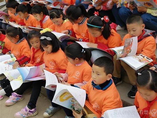 小学就建在草店村,由于地处偏远,周边大部分青壮年都在外地打工,所以6个年级总共才119人,且90%都是留守儿童。“由于条件差,学校没有图书室,平时孩子们自己买的书很少,只有几本书互相传阅,都翻烂了。有了这批图书,班级图书角就可以建起来”,六年级班主任宁煌老师感激地说。