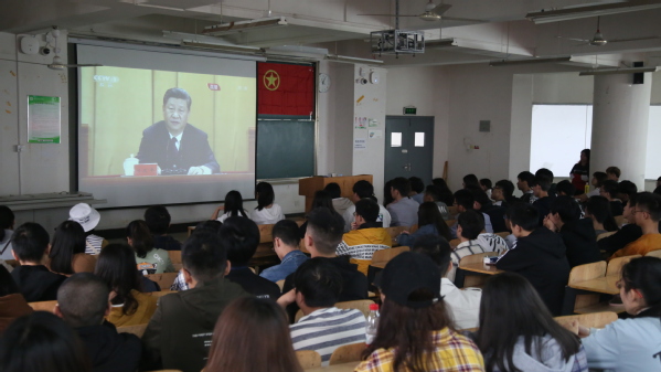 新闻中心讯(记者 李洋洋 孙伊珞)4月30日上午,全国纪念五四运动100周年大会在北京举行,中共中央总书记、国家主席、中央军委主席习近平出席会议并发表重要讲话。武汉工商学院第一时间组织广大师生通过电视、网络、手机等多种形式观看现场直播,认真学习习近平总书记重要讲话精神,反响热烈。