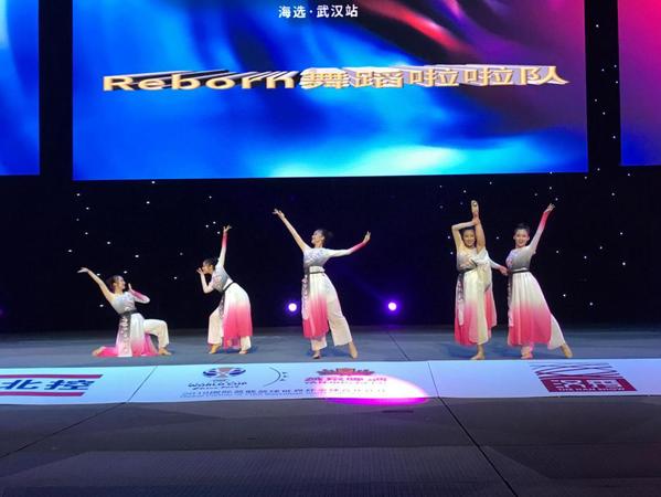 武汉工商学院Reborn舞蹈啦啦队隶属于该校艺术与设计学院,本次参赛的队员全部来自学校的舞蹈表演系。比赛分自选舞蹈、双人PK、主题舞蹈三个环节。比赛中,Reborn舞蹈啦啦队凭借着扎实的舞蹈功底和良好的团队协作能力,以精彩的舞台表现将现场气氛推到了高潮,获得全场观众和评委的一致好评,夺得了选拔赛武汉分站赛冠军,同时荣获了“汉秀活力之星”的称号。