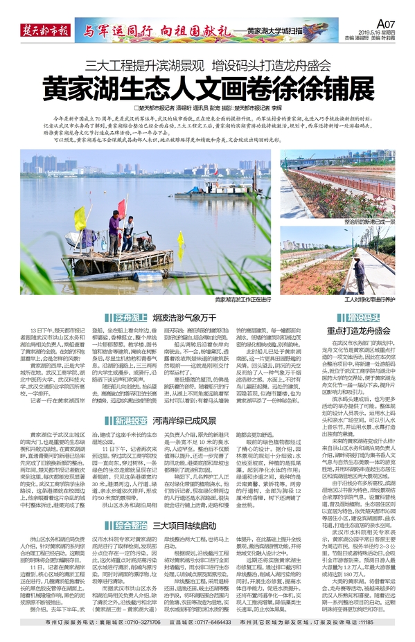 今年是新中国成立70周年,更是武汉的军运年,武汉的城市面貌,正在迎来全面的提档升级。而军运村旁的黄家湖,也进入巧手梳妆换新颜的时刻:记者从武汉市水务局了解到,黄家湖综合整治已经全面启动,三大工程完工后,黄家湖的滨湖赏游功能将被激活。规划中,西岸还将新增一处游船码头,助推黄家湖龙舟文化节打造成品牌文体活动,一年一年办下去。