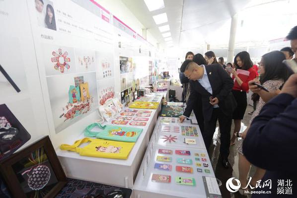 “我们的设计作品以中国传统工艺品‘团扇’为载体,通过‘黄鹤楼’‘长江大桥’等在武汉具有代表性的地标建筑及一些中国民间传说中的动物形象,来传播中华民族的传统文化和武汉元素。”张进进和孙孟一兴致勃勃地向观众们介绍自己的作品。
