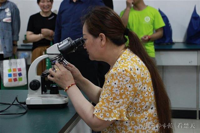 楚天都市报5月21日讯(记者王进良 通讯员蓝静 张俸源)在学校实验室内,一些家长正在学生们的指导下用显微镜观察细菌标本。18日上午,武汉工商学院邀请300多位家长走进教室、实验室,体验学生们的学习环境,了解学生的学习情况。