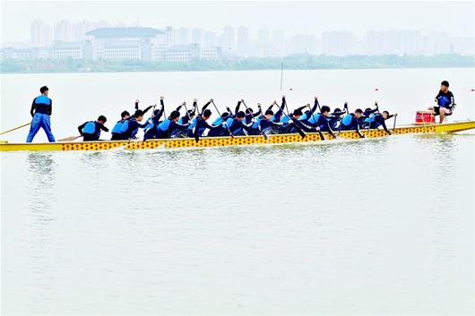 黄家湖的水面上,该校龙舟健儿们正在劈波斩浪加紧训练。教练告诉记者,该校龙舟队共有40多名队员,其中近一半参加了去年的首届龙舟赛。“在老队员的带领下,今年我们早早开展了系统训练。”该校大一学生杨罡说,自己以前从来没有接触过划龙舟,这次从陆上的体能训练开始,每天都练习两三个小时,最近已经在黄家湖上进行训练了。