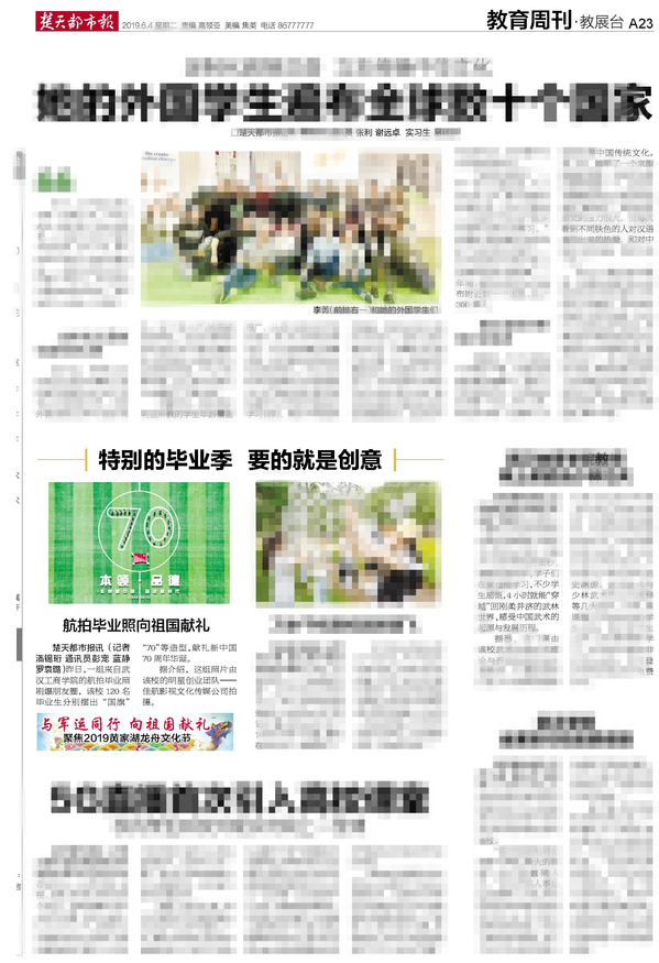 楚天都市报讯(记者潘锡珩 通讯员罗袁璐)昨日,一组来自武汉工商学院的航拍毕业照刷爆朋友圈,该校120名毕业生分别摆出“国旗”“70”等造型,献礼新中国70周年华诞。