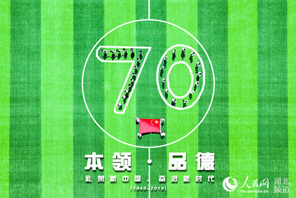 人民网武汉6月4日电 6月3日,一组来自武汉工商学院的航拍毕业照刷爆朋友圈,该校120名毕业生分别摆出“国旗”“70”等造型,配上“爱国、理想、责任、奋斗、本领、品德”等创意造型,向祖国70华诞献礼。(罗袁璐)
