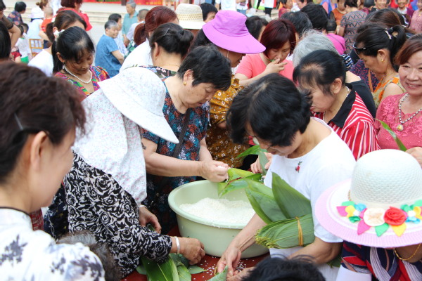 新闻中心讯(记者 许少云)又到一年端午来临之际,6月4日上午10:00,武汉工商学院图书馆携手青菱街道办在建和世家小区中心广场举行端午节活动,图书馆的职工们和周边社区的居民们一起看龙狮表演、猜灯谜、参与传统知识竞答以及包粽子比赛等活动,在亲身体验中弘扬和传承端午文化。