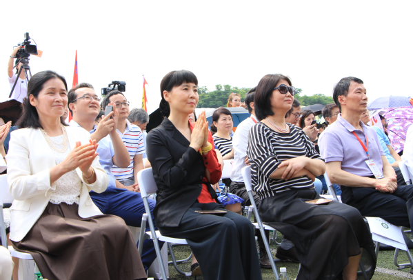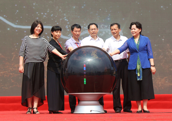 图为参加龙舟文化节的领导共同启动开幕球 摄影:胡爽