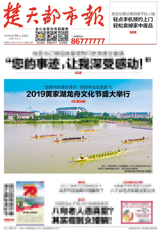楚天都市报头版:2019黄家湖龙舟文化节盛大举行