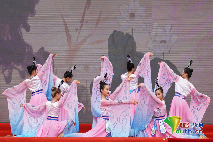 中国青年网武汉6月19日电(井迪 蔺琪 蓝静 罗袁璐 孙欢欢 李洋洋) 6月13日,由湖北省体育局、湖北日报传媒集团、洪山区人民政府主办,武汉工商学院、楚天都市报承办的“与军运同行 向祖国献礼”2019黄家湖龙舟文化节,在湖北省武汉市黄家湖北岸的武汉工商学院举行,一场内涵丰富、形式多样的传统文化盛宴正式开启。