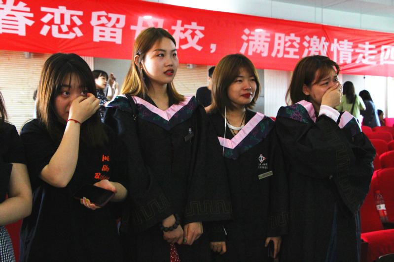 图为毕业生们不舍落泪 摄影:郭冰雪