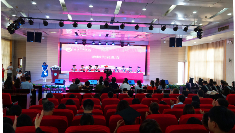 校长助理左宗文同志宣读了《关于同意詹慧等2809名毕业生本科毕业的决定》《关于同意马雪娇等673名毕业生专科毕业的决定》及《武汉工商学院学士学位评定委员会关于授予詹慧等2779名毕业生学士学位的决定》。