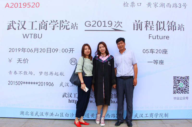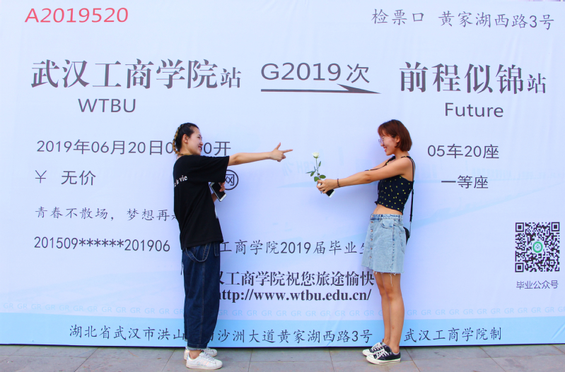 记者在现场发现,毕业典礼当天的现场布置也十分走心,校园内矗立着巨幅的“高铁票”,票面上记录了2019届毕业生大一入校和大四毕业典礼的日期,并写上“武汉工商学院站——前程似锦站”与“青春不散场、梦想再起航”的美好祝福,祝贺学生们顺利毕业起航人生新征程,让不少毕业生直呼暖心。新颖的毕业背景墙吸引了众多毕业生花式“比心”拍照留影,用一张张充满“仪式感”的毕业照片纪念自己的大学时光。