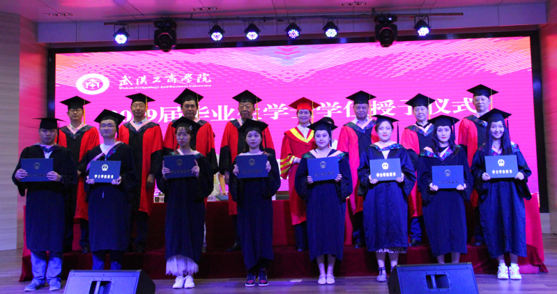 新闻中心讯(记者 李洋洋)6月20日上午9:00,武汉工商学院2019届学生毕业典礼暨学士学位授予仪式在学校学术报告厅隆重举行。学校学位评定委员会主席彭秀春及委员童光荣、张金海、杨昌柱、郭一平和王海文,党委书记刘生元,副校长桂裕清、张俊,以及各职能部门领导,各学院领导、教师代表、辅导员代表、毕业生代表、毕业生家长代表、在校生代表参加了典礼。典礼由张俊副校长主持。