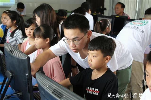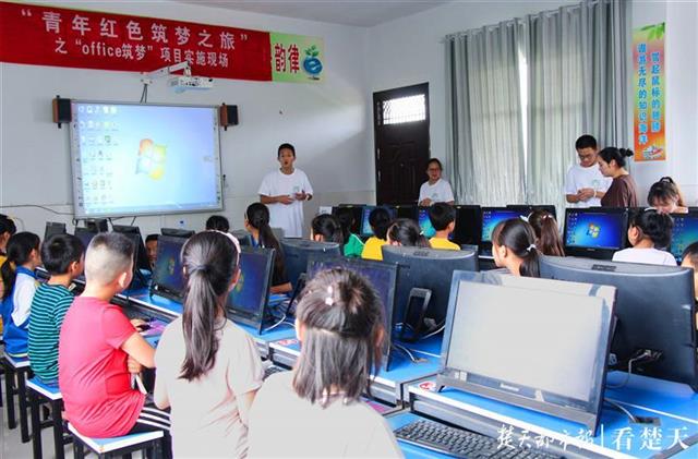 楚天都市报6月20日讯(记者王进良 通讯员刘婕 李洋洋 车瑭甜)“在Excel里面输入学生的数学成绩和姓名,在总分那一竖栏中输入=sum(c4:h4),接着进行下拉,所有学生的总分就都出来了。”18日,武汉工商学院软件工程学院“office逐梦之旅”团队,来到学校精准扶贫工作队驻点村——江陵县马家寨乡马林村的张黄小学,为该校教职工和四年级学生开展办公软件培训。