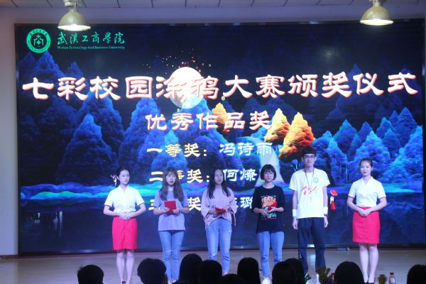 新闻中心讯(记者孙伊珞)6月17日晚18:30,武汉工商学院第十七届校园“七彩”文化艺术节颁奖典礼暨闭幕式在学校体育馆403隆重举行。校学生会主席团代表、各学院分团委学生会主席团、“七彩”子活动获奖人员、往届校学生会的成员及各学院学生代表近300人一同参加了此次闭幕式晚会。
