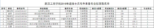 根据《武汉工商学院2019年普通专升本招生简章》关于退役士兵录取的规定,现公示退役士兵预录取名单。