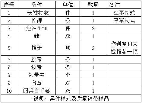 一、招标项目名称:军训服装采购招标