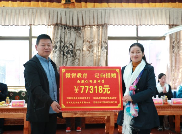 仪式上,“微智教育”工作站和“火凤凰”大学生社会实践基地正式挂牌。“微智教育”工作站设在仁布县中学,共购置了10台计算机及其他设备,志愿者们可以通过工作站开展远程网上支教与心理辅导等。民进武汉市委会和武汉工商学院代表还向仁布县中学捐赠了价值77318元的助学款及物资。