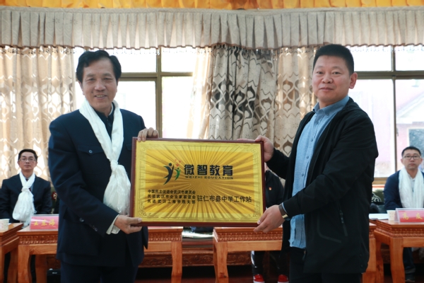 新闻中心讯(记者 谭锦涛)“在西藏仁布县中学设立‘微智教育’工作站,是为了进一步优化整合各方教育资源,汇聚社会各界公益团体和志愿者的力量,创新支教模式,探索长效机制,在精准扶智、扶贫上下功夫,努力为西藏地区的教育事业贡献力量。”8月13日上午,民进武汉市委会、民进武汉市企业家联合会、民进武汉工商学院支部驻西藏仁布县中学“微智教育”工作站暨武汉工商学院“火凤凰”大学生社会实践基地挂牌仪式在西藏仁布县中学举行,武汉工商学院董事长彭秀春在仪式上介绍了设立工作站的初衷,并表示将以多种形式长期援助、支持仁布县中学的教育工作。