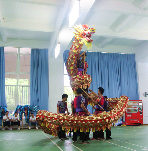 图为舞龙队正在为学院表演舞龙 摄影:邵烨炫